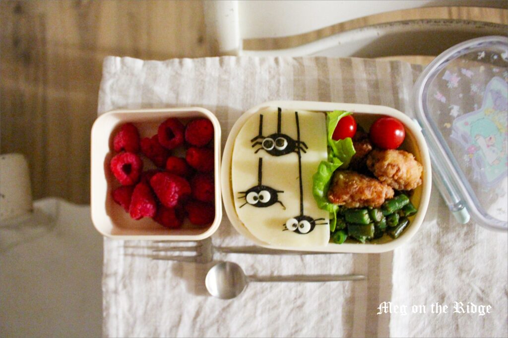 ここでは私が毎日作っている簡単キャラ弁、デコ弁を紹介していきます。基本的に、海苔、チーズ、ごま、あればぶぶあられのみで作っています。ごはん、プチトマトは鉄板品目で、その他おかず2品を加えてお弁当を作るのが、我が家のパターンです。今月は、「ハロウィン」がお弁当テーマです。