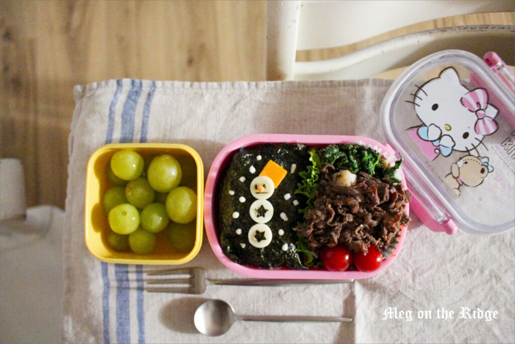 ここでは私が毎日作っている簡単キャラ弁、デコ弁を紹介していきます。基本的に、海苔、チーズ、ごま、あればぶぶあられのみで作っています。ごはん、プチトマトは鉄板品目で、その他おかず2品を加えてお弁当を作るのが、我が家のパターンです。今月は、「クリスマス」と「冬」がお弁当テーマです。